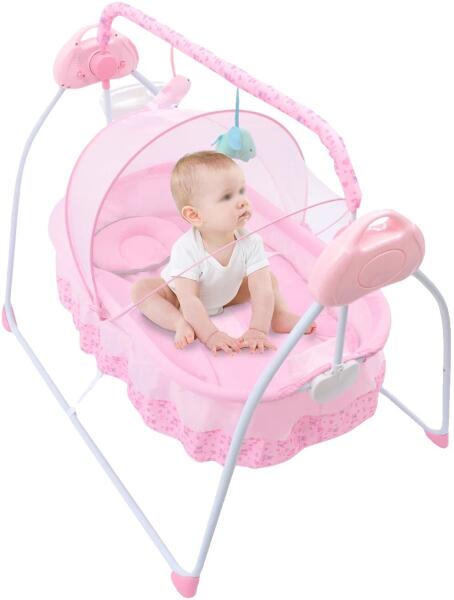 Bababölcső hinta, 5 fokozatban állítható, időzítési funkció, hordozható kivitel, rózsaszín