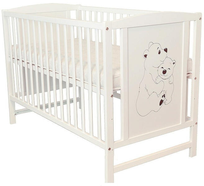 Bajka 60*120cm kiságy - fehér Fekvőfelület mérete: 60 x 120 cm - fekvőfelülete három magassági fokozatban állítható- rácsaiból 3 db kivehető- Tömör fenyőből készült masszív gyermekágy- A kiságy 60X120 cm-es matraccal használható (nem a termék része). -rövidebb oldalán maci mintával- A bútor öko vízfestékkel festve. A bútor matracot nem tartalmaz, ez külön rendelhető hozzá! Rendelési idő ( amennyiben a termék nincs készleten): kb. 6 hét A bútort lapra szerelve szállítjuk!Kiszállítással kapcsolatban, kérem érdeklődjön kollégáinknál!