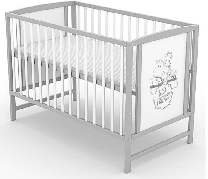 Bajka Best Friend kiságy: 60x120 cm-es tömörfenyő bölcső ? Ez a gyönyörű, szürke-fehér kiságy tökéletes választás a kisbabád számára! Tömör fenyőfából készült, így masszív és biztonságos. A vidám zsiráfos mintával díszített oldalpanel extra hangulatos megjelenést kölcsönöz. Főbb jellemzők:Méret: 60 x 120 cm Anyag: Tömör fenyőfa Szín: Szürke/fehér Állítható magasság: Három magassági fokozatban állítható a fekvőfelület Kivehető rács: 3 db kivehető rács a könnyebb hozzáférésért Vidám minta: Zsiráf mintával a rövidebb oldalon Környezetbarát: Öko vízfestékkel festett Fontos tudnivalók: A matrac nem tartozék, külön vásárolható meg. A kiságy lapra szerelve kerül kiszállításra. Biztonságos, kényelmes és stílusos otthont biztosít a babádnak az első hónapokban. ?