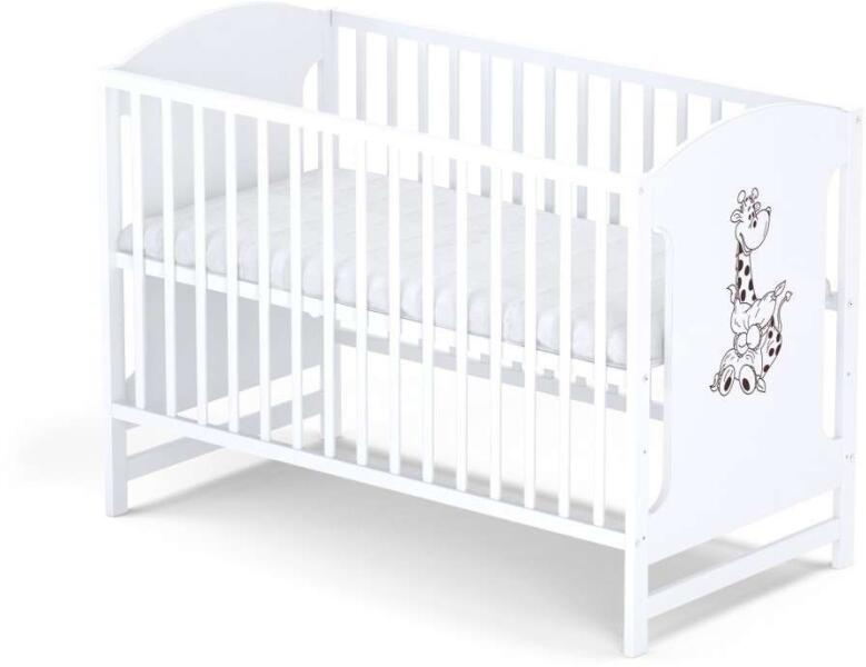 Bobas Miki Kiságy Zsiráf mintával - 60x120 cm Ez a gyönyörű, fehér színű Bobas Miki kiságy tökéletes választás a babád számára! Kiváló minőségű bútorlapból és csomómentes fenyőből készült, így biztosan hosszú éveken át szolgálja majd a családot. A vidám zsiráf minta pedig feldobja a gyerekszoba hangulatát. ? Főbb jellemzők:Három magassági fokozat: Könnyen állítható a babád növekedéséhez igazítva. ? Kivehető pálcák: A nagyobb gyermekek könnyedén ki- és be tudnak mászni. ? 1 év gyártói garancia: Biztonságban tudhatod a vásárlásodat. ?️ Méretek:Tulajdonság MéretFekvőfelület 60 x 120 cmTeljes hossz 124 cmTeljes szélesség 64 cmTeljes magasság 84 cmFontos! A kiságy matracot nem tartalmaz, ezt külön kell megvásárolni.