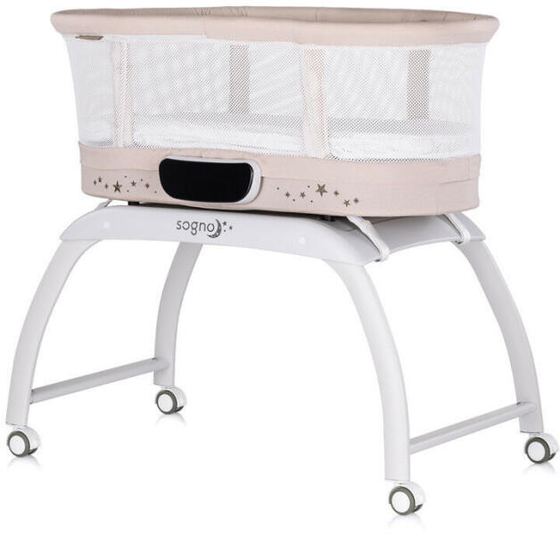 Chipolino Sogno Multifunkciós Babaöböl: 3 az 1-ben megoldás a nyugodt éjszakákért! ? A Chipolino Sogno egy multifunkciós babaöböl, amely újszülött kortól használható, és később kisasztallá alakítható. Beépített mérlegének köszönhetően nyomon követheted babád fejlődését. Tökéletes választás a modern szülők számára, akik értékelik a praktikumot és a kényelmet. Főbb jellemzők és előnyök:Babaöböl funkció: Újszülött kortól 9 kg-ig használható. Puha, lenvászonból készült, hálós anyag biztosítja a megfelelő szellőzést. 5 hintázási sebesség (8, 15 és 30 perces időzítővel) segít a babának elaludni. Altató dallamok és Bluetooth csatlakozás a nyugodt pihenésért. Hangerő szabályozó és távirányító a kényelmes használatért. Beépített digitális mérleg: LED kijelzővel a súly egyszerű nyomon követéséhez. Kisasztal funkció: A babaöböl levétele után kisasztalként használható 1 éves kortól. Biztonság és mobilitás: 4 db fékezhető kerékkel van felszerelve a könnyű mozgathatóságért és a biztonságos rögzítésért. Megfelel az EN 1130:2019/AC:2020 és 16890:2017+A1:2021 európai szabványoknak. Műszaki adatok:Méret (HxSzxM) Matrac mérete (HxSz) Tápellátás95x54x87 cm 83x40 cm AC/DC adapter (mellékelve)A Chipolino Sogno babaöböl nem csak egy praktikus eszköz, hanem egy biztonságos és kényelmes hely a babád számára, ami megkönnyíti a szülők dolgát a mindennapokban. ?