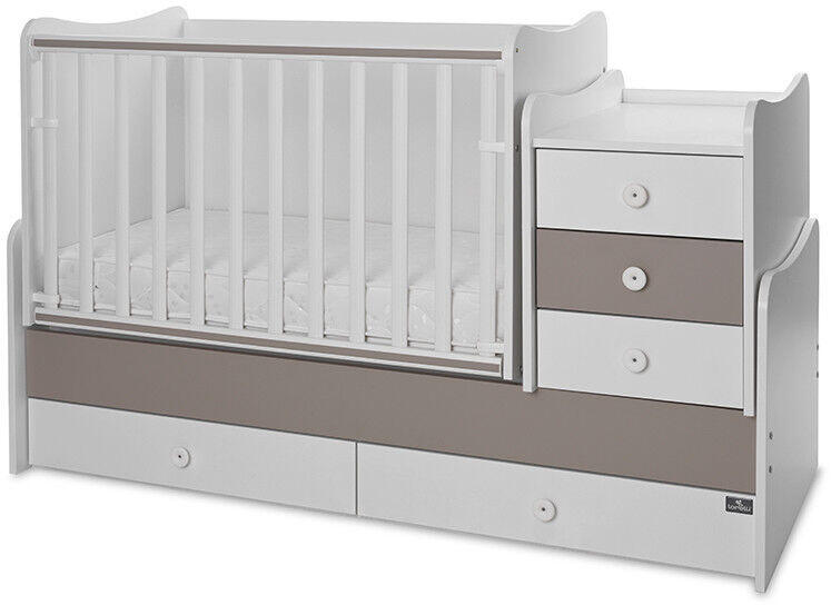 Lorelli Maxi Plus Kombi Ágy: 5 az 1-ben megoldás a babaszobába! ?️ A Lorelli Maxi Plus kombi ágy egy multifunkcionális bútor, amely a baba születésétől egészen a tinédzserkorig használható. Ez a pénztárcabarát megoldás együtt nő gyermekeddel, így nem kell különféle bútorokat vásárolnod az évek során. Funkciók és átalakítások:Babaágy (70x160 cm): Újszülött kortól használható, oldalirányban ringatható vagy fixálható. Pelenkázó komód: 3 fiókkal a pelenkázáshoz szükséges holmik tárolására. A komód levehető és éjjeli szekrénnyé alakítható. Ifjúsági ágy: A kiságy ifjúsági ággyá alakítható, így a gyermek tovább használhatja a megszokott ágyat. Íróasztal: A kiságy egy része íróasztallá alakítható, ami ideális a tanuláshoz. Éjjeliszekrény: A pelenkázó komód különálló éjjeliszekrénnyé alakítható. További előnyök:Két nagyméretű ágyneműtartó fiók: Könnyen tárolhatók a textíliák. Lekerekített formák: Védik a babát a sérülésektől. Sokoldalú összeszerelés: A komód bármelyik oldalra felszerelhető. Könnyű szétszerelés: A bútor könnyen szétszerelhető és szállítható. Tartós anyag: 18 mm-es melamin forgácslapból készült. Méretek:Méret ÉrtékKiságy matracmérete 110x62x10 cmKombi ágy mérete 167x72x104 cmIfjúsági ágy mérete 167x72x52 cmÍróasztal mérete 114x68x70 cmPelenkázó komód mérete 44x70x62 cmSúly 112 kgFontos: A matrac nem tartozék, külön rendelhető! A bútor lapra szerelve kerül kiszállításra. A termék színe és mintája az első fotón látható, a további képek illusztrációk a termék tulajdonságairól!