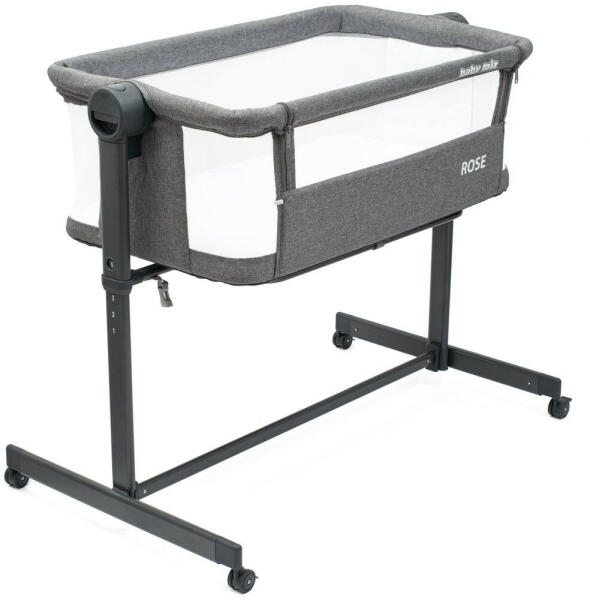 Baby Mix Rose Szürke Babaágy: Biztonságos és kényelmes pihenés a babának ? A Baby Mix Rose babaágy tökéletes választás, hogy biztonságos és kényelmes alvóhelyet biztosíts a babádnak. A szürke színű babaágy nem csak praktikus, de stílusos kiegészítője is lesz a gyerekszobának. Főbb jellemzők:5 magassági szint: Könnyedén a szülői ágyhoz igazítható (68-80 cm). Cipzáras oldal: A külső oldalon található cipzárak segítségével könnyen hozzáférhetsz a babához. Csendes, fékezhető kerekek: Könnyű mozgatást tesznek lehetővé, így bármikor áthelyezheted a kiságyat. Szerszám nélküli összeszerelés: Gyorsan és egyszerűen felállítható, nem igényel szakértelmet. Kényelmes matrac: A csomag tartalmazza a baba számára ideális matracot. Masszív acél váz: Biztonságos és stabil szerkezetet biztosít. Tartós anyag: 300D poliészterből készült, ami könnyű és strapabíró. Méretek:Méret ÉrtékKiságy magassága 68-80 cmMagasság a matractól 31 cmKiságy hossza 84 cmKiságy szélessége 52 cmAnyag 100% poliészter 300DA Baby Mix Rose babaágy ideális választás azoknak a szülőknek, akik egy praktikus, biztonságos és kényelmes babaágyat keresnek. ?