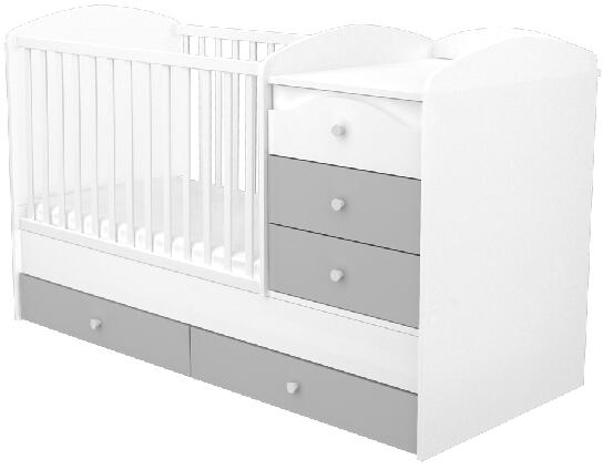 TIMBA kombiágy Erik maxi 5 fiókos ezüst-fehér 70x120